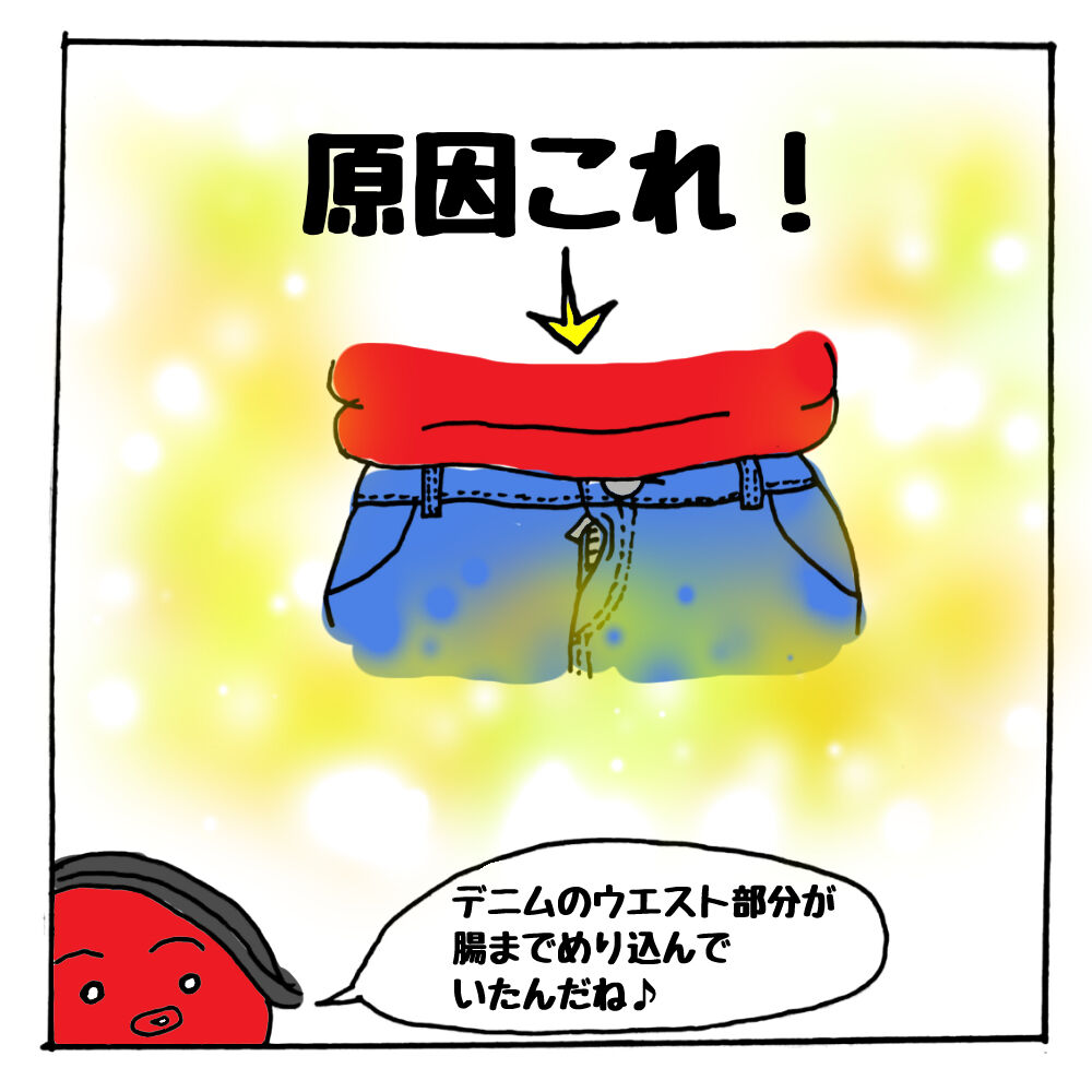 ゆったりデニムに変えたらお腹痛くなくなりましたー♪
