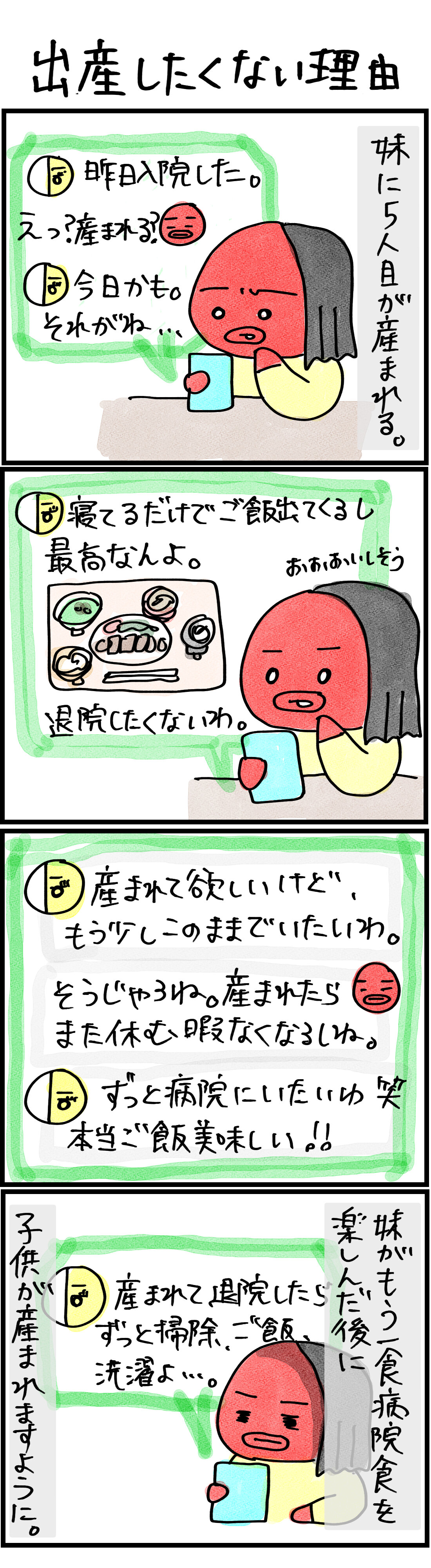出産したくない理由 2023年04月16日 22:00 こんばんわ!!前回の話【ドSの女医さん】↓ 全国のお母さん達お疲れ様です!!!一人暮らしはご飯適当で済むけど、家族居るとそうも行かないもんね。出産前後1ヶ月くらい病院でゆっくりできるといいのにね・・。ギリギリまで働いて子育てしてた妹様、お疲れ様!!妹の話↓ 前回の子供が生まれる時の話↓ スポンサードリンク 「妹」カテゴリの最新記事 < 前の記事次の記事 > コメント コメントフォーム 名前 コメント 記事の評価 リセット リセット 顔 星 情報を記憶 コメントを投稿する