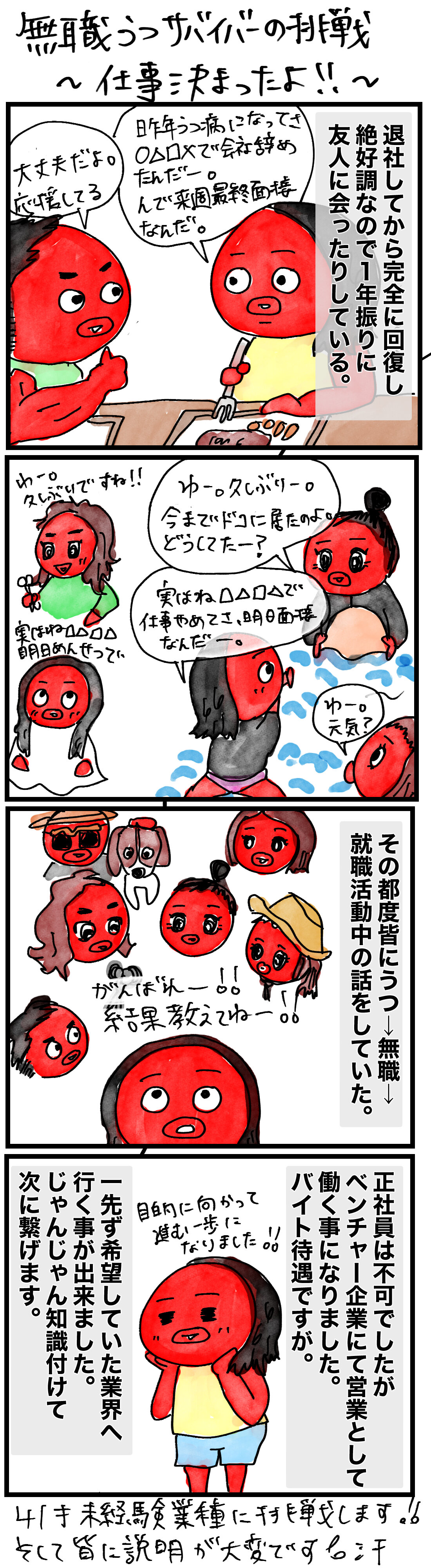 会う度皆に『うつ病だった事、退職した事、回復して転職活動中の事。』