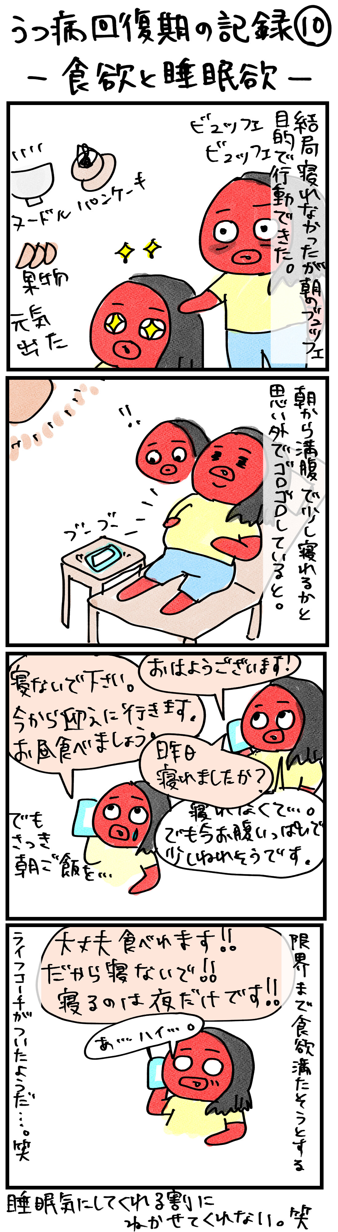 うつ病回復期の記録−10(食欲と睡眠欲) 2025年01月16日 21:00 タイ・バンコク旅行記──数年振りにあう友人達 うつ病回復期のポンコツポンジは友人に会いにバンコクへの旅に出た ・・前回の話⬇️【うつ病回復期の記録−9(食欲と睡眠欲)】限界まで食べさせてくる謎の療法(?)で睡眠導入剤無しで寝れるようになる日が来るのでしょうか?!とにかく朝からいっぱい食べて幸せでした😊ご飯が美味しいと感じました! ◀︎ 前の話(第9話) 次の話(第11話) ▶︎ -----次の話-----【うつ病回復期の記録-11】 スポンサードリンク 「うつ病回復期の記録(連載中)」カテゴリの最新記事 タグ :#うつ病回復期 < 前の記事次の記事 > コメント コメントフォーム 名前 コメント 記事の評価 リセット リセット 顔 星 情報を記憶 コメントを投稿する