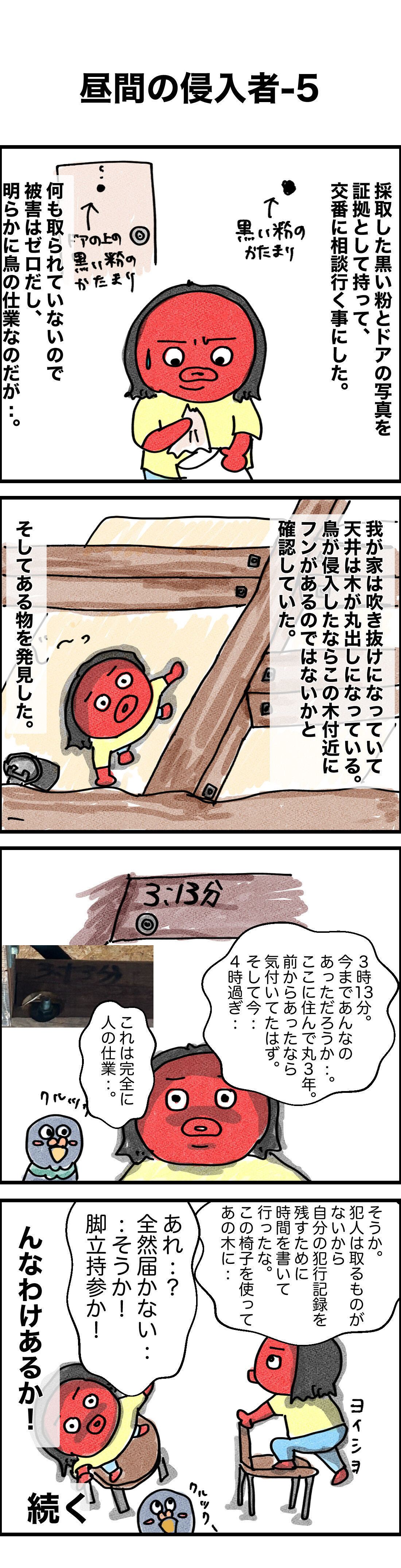 昼間の外出から戻ったポンコツポンジが、部屋で不審な痕跡を発見! 犯人が鳥だと気づかずに勘違いして・・・